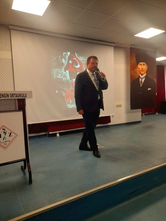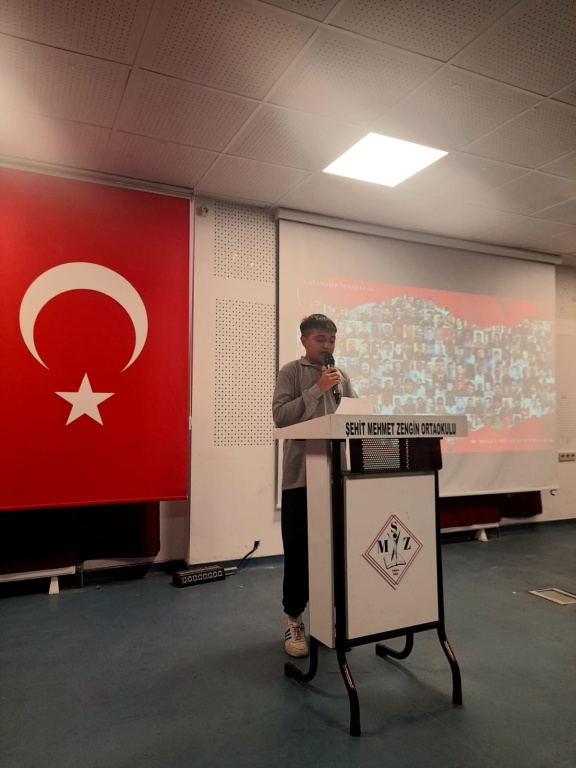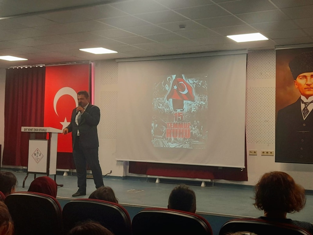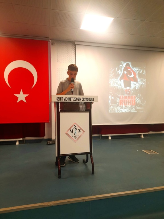15 Temmuz Demokrasi ve Milli Birlik Günü Şehit Mehmet Zengin Ortaokulunda büyük bir coşku ile kutlandı. Okul Müdürümüz Abdullah TÜRKDOĞAN'IN günün anlam ve önemini belirten konuşmaları, öğrencilerimiz üzerinde vatan sevgisi konusunda farkındalık yaratmıştır.